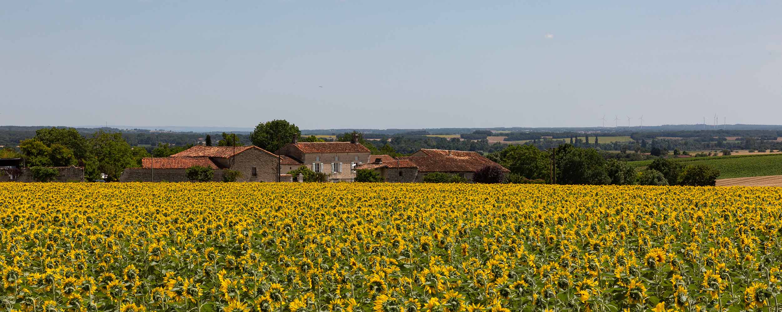 Set between rolling sunflower fields and cognac vineyards, La Cour de Husson offers a tranquil setting for holidays in France. Our stylish newly-renovated gîtes offer the space to relax in the beautiful Charente countryside sleeping up to 10 people over two villas with a private pool and an acre of gardens. Relax by the pool with ice-cold drinks and homemade ice cream from the honesty bar, or grab a game of table tennis under the shade of the barn.